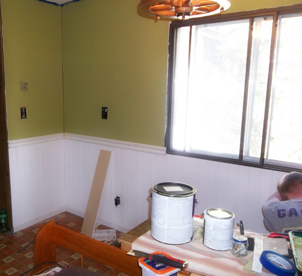 We have 99% of the trim up on the wall, and we also added trim around the window, which has made SO much of a difference.