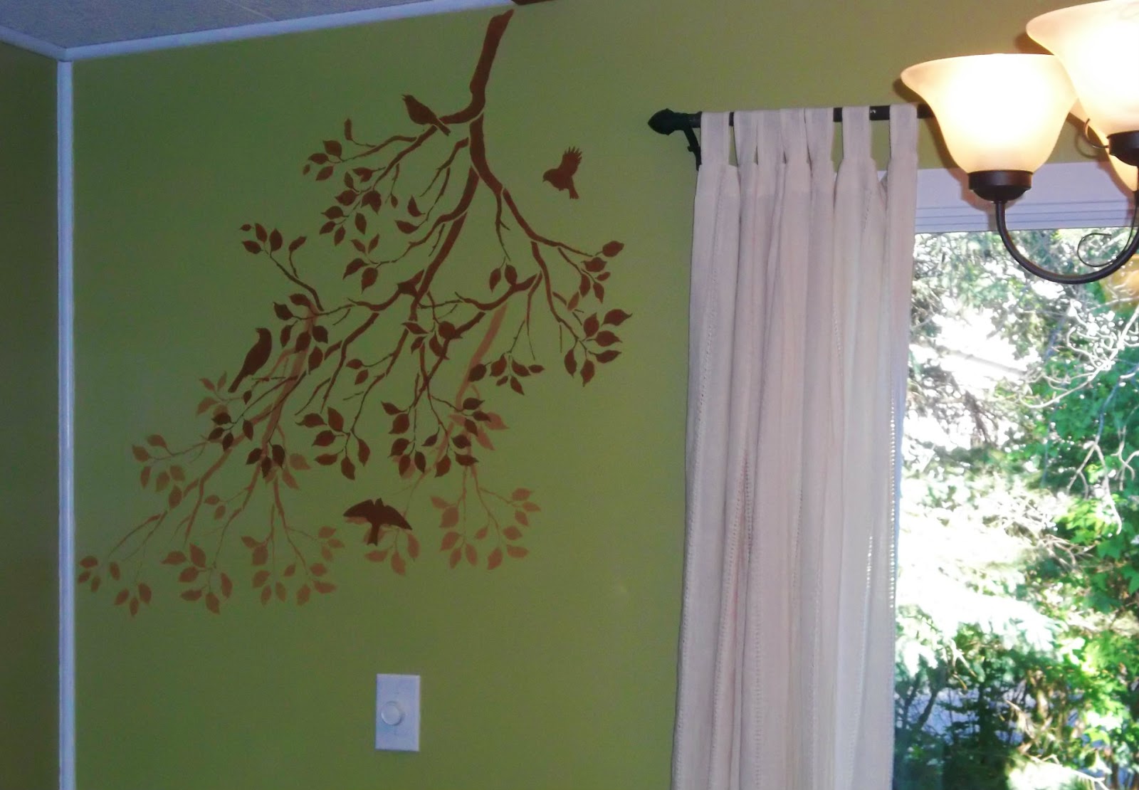 The stencil was a giveaway win from Cutting Edge Stencils. I just love how it turned out. I am thinking I may add one or two more branches somewhere on this wall as well.