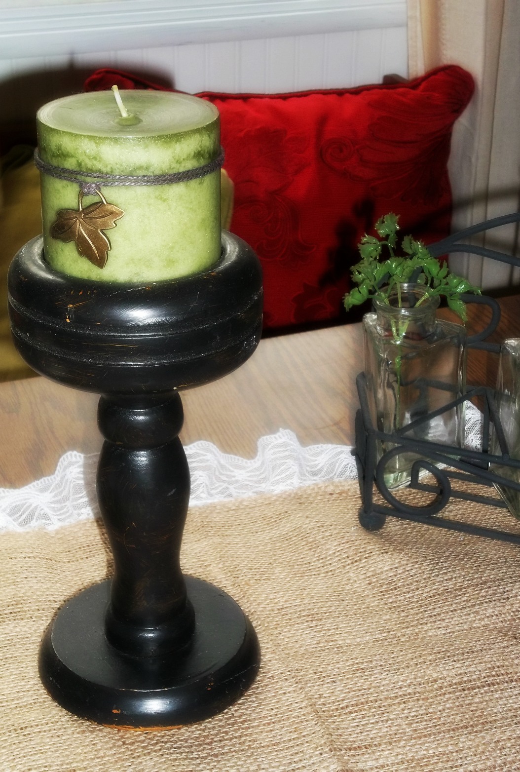 The candle holder I bought at a garage sale for 50 cents. My plan was to paint it, but once I got it home...I loved the worn black paint with the bit of gold showing through, so I'm leaving that as it is.