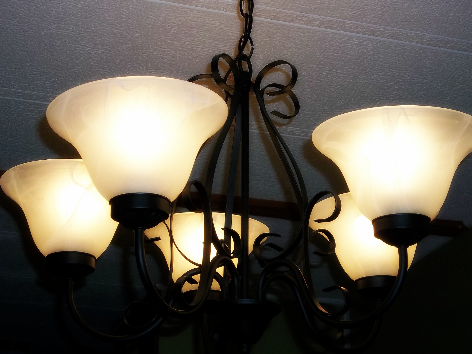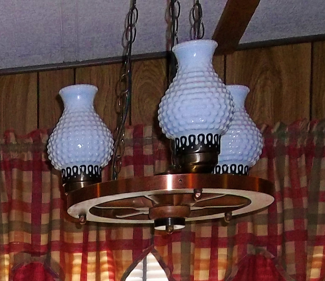 Now I suppose I could have gotten smaller bulbs, but I didn't. I bought 60 watt bulbs, and when this sucker is all the way up....it's like we're on the surface of the sun. It's BRIGHT!