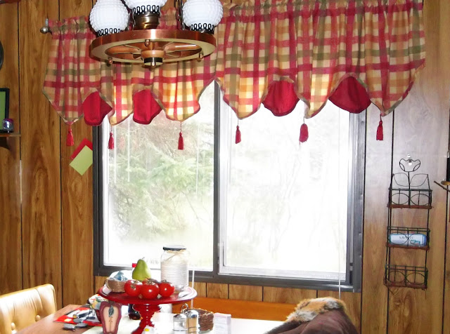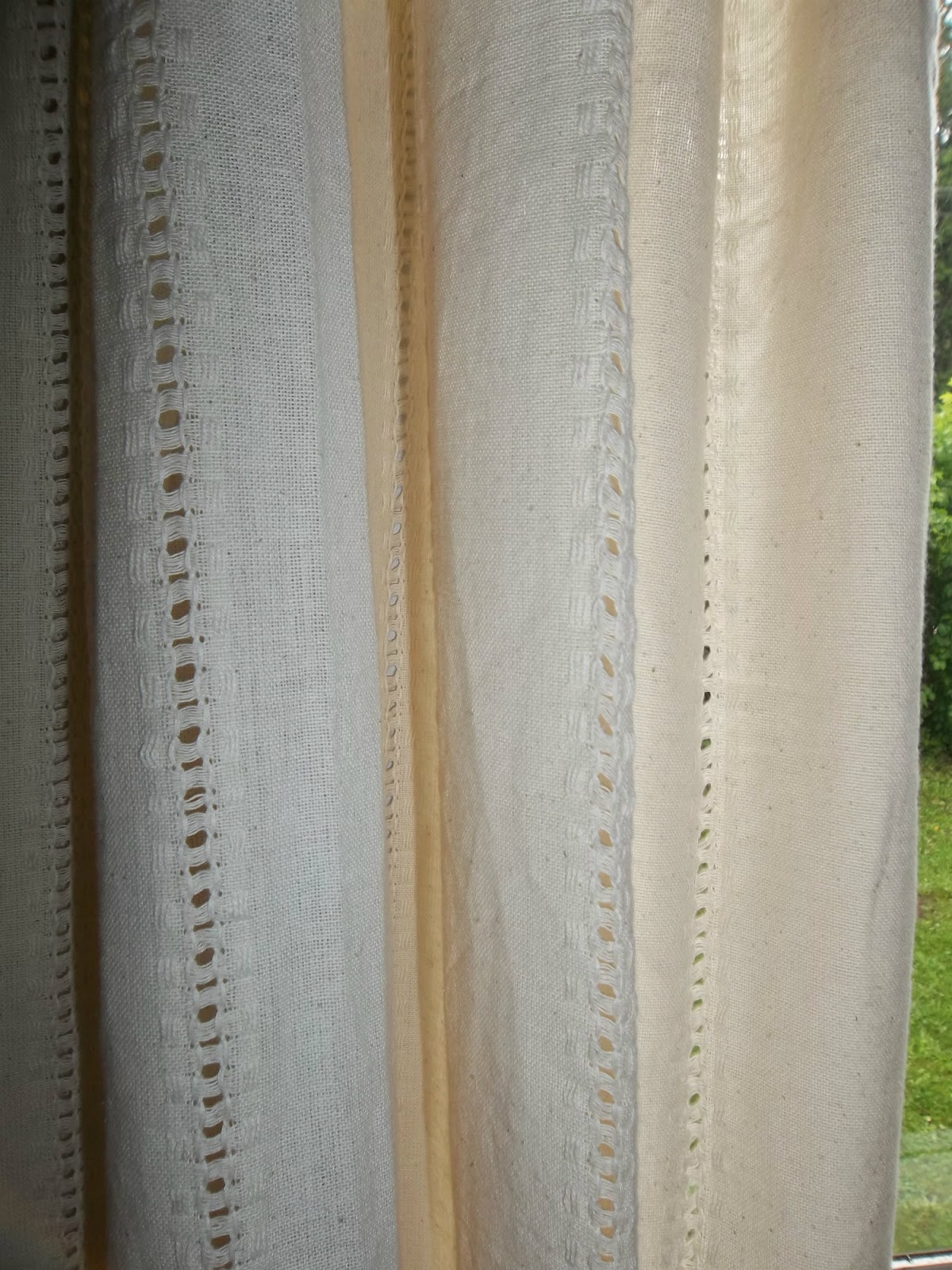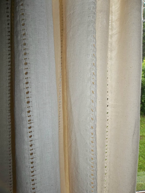 I really wanted to make curtains out of painter's drop cloths, but at the time I couldn't find any that were big enough. I was so tired of not having curtains on the window, though, so one day I was at Kmart and thought I would take a look and see what they had. I found these cream colored linen panels, and they were only $15 each, so I grabbed them. I love how they look!